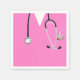 Creative medical school graduation or doctor birthday party napkins featuring pink hospital scrubs and funny Swiss army knife in the pocket.