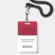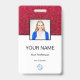 Smart corporate design Name ID Badge with faux metallic red trim. Modern font typography details are easy to customize on both sides and photo image, logo and reverse side barcode (or QR Code) can be replaced with your own (or deleted where necessary). An elegantly chic and professional badge possibly suited to hospital, medical or administrative staff.