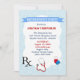 Doctor's Prescription for retirement is this blue retirement invitation with a stethoscope, a RX symbol, and red, white, and blue pills.
