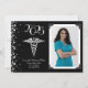 Celebrate the new doctor of medicine graduate from medical school with this silver and Black medical caduceus graduation announcement! Elegant with a vintage photo border and silver confetti accents! Perfect for anyone graduating as an md or do with doctorate!