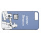 Add your choice of name. Doctor is using his stethoscope on the feet of a patient. Funny cartoon with blue background. Phone case for a doctor, physician, or GP