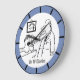 Cartoon of a doctor checking his patient's feet with a stethoscope. Add your choice of name. Clock for a doctor. Clock for a pediatrician.