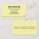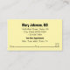 Front: There's display text that can be edited to show the doctor's name and the name of the medical practice, office address, and phone number. At the bottom, there's an appointment reminder. It begins with a line for a custom message (shown: Your Next Appointment) There are abbreviations for the days of the week. Finally, there's an area to write in the date and time for the next appointment.