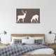 A cream colored doe and buck silhouette each on their own canvas on an espresso brown colored background.