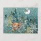Doe and Fawn Deer in Forest Full Moon Snowfall Postcard
