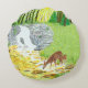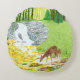 A pillow with a beautiful forest scene including doe and fawn drinking from a stream near a waterfall. Original artwork by W.B.