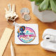 Vibrant, colorful design featuring a female skeleton sipping coffee. The colorful text reads: "Warning does not play well with others". This design is available on a wide variety of products.