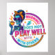 Vibrant, colorful design featuring a female skeleton sipping coffee. The colorful text reads: "Warning does not play well with others". This design is available on a wide variety of products.