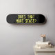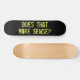 Check out this cool skateboard! Black background. In yellow is the question "DOES THAT MAKE SENSE?" Click the Edit Design feature to change the color or font!