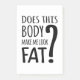 Does this body make me look fat? A fun slogan for the eternal optimist with a new way of looking at your problems. Diet not included!