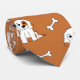 Simple pattern with a drawing of a dog and a bone on a brown background.