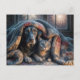 Dog and Cat Under a Quilt Postcard