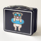 This is a standard metal lunchbox that appears to work just fine. We designed this box ourselves with an uploaded photo and custom text on the front and back. It looks absolutely beautiful except the front of the lunchbox is not centered like it shows in the photo. The print borders don't align with the inset flat part of the box where the preview photo online showed it perfectly centered in there. The back looks nice and centered though.