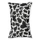 Dog bed shown in a cute black and white country cow print design.