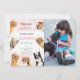 Plain white envelopes are included with paper invitations and will come to fit the invitation size you select. If you don’t need the envelopes, you may choose to not receive them by selecting the dropdown below "Envelopes" and choosing "None." If you’d like to have a design on your envelopes, you can browse all of these available envelopes to find the design that complements your Dog Birthday Pawty Photo Invitation.