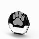 A dog paw print and dog bone with room for text in a circular design.