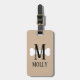 Dog bone monogram pet travel luggage tags. Personalize with your own pet name or own name. Brown or custom background color. Cute design with elegant typography. Cool gift for new pet, animal lover, dog walker, dog groomer, pet sitter, pet owner, dog mom etc.