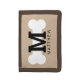 Dog bone monogram trifold wallet for pet owner. Personalize with your pet name or own name. Brown or custom background color. Cute design with modern typography. Cool gift for kids, new pet owner, animal lover, dog walker, dog groomer, pet sitter, pet owner, dog person etc.
