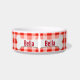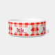 This is a heavy, durable bowl decorated with Tibbies of many colors, the perfect size for hungry/thirsty Tibs. The design is interesting and printing clear.