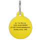 Fun bright dog tag done in sunny yellow, with a white cartoon bone, on the front. Personalize the black text with your dog's information. Great with our matching dog products.