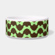 Unique dog bone zigzag bowl for your favorite pet in brown and green with name.