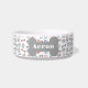A fun, cool design personalized name dog bowl featuring dog bones, paws and hearts in blue, pink and gray. Designed by Thisisnotme©