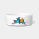 Cute dog bowl with pooped out dog.