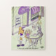 A jigsaw puzzle with a funny cartoon about dogs meeting in a cafe. The background, image and text can be personalized. Original artwork by DBcartoons.