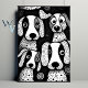 A black and white pattern with little dogs in the background, in the style of pop art illustration, surrealistic cartoons, digitally enhanced, expressive faces, mosaic forms.