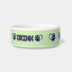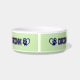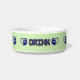 Serve your pet in style with this pet ceramic water bowl. It features some blue paw print hearts and the word "Drink" in navy blue color, against a sage green background. It's not only stylish but microwave and dishwasher safe too.