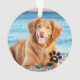 Personalized "Happy PAWlidays" Dog Photo Ornament. Add some holiday cheer and humor to your decor with this playful dog ornament, perfect for showcasing your pup’s mischievous side. The front features the festive text "Happy PAWlidays" as a fun twist on the traditional Happy Holidays greeting, along with your dog’s name, capturing your puppy's unique personality. There's also space for a photo of your dog to make it extra personal. The back showcases a paw print design with a heart cutout in the center, adding a sweet touch. Both the font color and paw print can be customized to suit your style. This humorous keepsake makes a great gift for dog lovers, perfect for the holidays, birthdays, or just because. It's a fun way to celebrate your puppy’s playful side, whether displayed on the Christmas tree or year-round in a special spot!