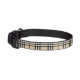 This tan tartan print dog collar is a classic and very popular. For the complete luxe look, check out the matching dog leash and food bowl.