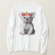 Cute French Bulldog with a dog cuddles quote as a long sleeve tee shirt for her. The cute dog has flowers on her head. Thanks to Creative Fabrica for the elements in the design.