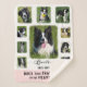 Perfect for celebrating your favorite dog or memorializing your special pooch, this sherpa blanket features 10 custom photos plus your dog's name and more text. Use the easy templates to personalize. Add your pictures and change text lines 1 and 2. The text at the bottom currently says, "Dogs leave paw prints on our hearts." You can keep it or "customize further" to make detailed changes. The color of the pink bar can also be changed. Choose from small, medium, or large blanket sizes (small is shown). Look no further than this personalized sherpa blanket for the dog lover on your gift list.