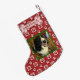 Dog Custom Photo Name | Red Paw Print Gingham Bone Small Christmas Stocking
