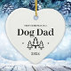 First Christmas as a dog dad heart ornament for pet lovers. Elegant porcelain ceramic holiday ornaments in white with black lettering. Featuring Christmas trees and stars.