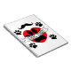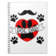 A dog paw print in a red heart with text on a ribbon. Original design with paws and a mustache. A gift idea for men.