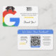 This is a clean minimalist google review business card for Doggie daycares, veterinarians or pet sitters or anyone that has a google business profile and works with canines. On the front side of the card you have the iconic Google G logo with a cute border collie peeking over it. positioned in the bottom left of the card. This logo can be moved to your liking! You also have your logo, a personalized message or call to action to leave you a review on Google. You have an image depicting 5 stars which serves as a cue to let your customers know that a 5 star review is expected. Of course you must deliver on your product quality and service for this to happen. Lastly, there is a thank you message at the bottom. On the back side of the card you have a personal message at the top, simple instructions on what to do, your QR code in the center and your business information to the right of the code. This card is 100% customizable, you can change the images, the text, the fonts and the colors. You could also just plug in your info and add your logo images and run with it. If you need any help with this template please send me a message and I will gladly assist you. Thanks! Sandy