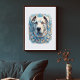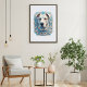 This dog poster has an urban and sophisticated design. The cool blue color scheme will add an accent to your room.