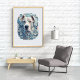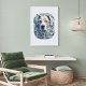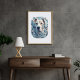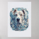 This dog poster has an urban and sophisticated design. The cool blue color scheme will add an accent to your room. Recommended for dog lovers as well as art lovers. Frame not included.