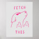 A fun and rebellious illustration to add attitude to your space. This minimalist design in a bold color features a dog with sunglasses and a defiant gesture, along with the phrase 'FETCH THIS'. Perfect for those who love irreverent humor and designs with personality. Ideal for decorating offices, bedrooms, or any place where you want to add a touch of fun and character.