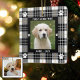 Commemorate your FIRST CHRISTMAS with your new puppy dog or create a keepsake ceramic ornament with your custom title. This two-sided ornament style has two of your favorite photos--one on each side. ALL text is editable so you can change as desired. The personalized front side has an editable title (shown with FIRST CHRISTMAS) and name or name and year with a black, white and tan plaid pattern and the back has a full-bleed photo. ASSISTANCE: For help with design modification or personalization, color change, resizing or transferring the design to another product, contact the designer BEFORE ORDERING via the Zazzle Chat MESSAGE tab or email makeitaboutyoustore@gmail.com.