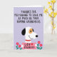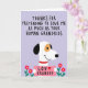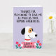 The front design shows a friendly white dog on a pale lavender background, with one dark rounded ear, a warm ochre patch near its eye, and a bright red collar that adds a loving touch ❤️. Across the upper two-thirds, thick black hand-drawn lettering stretches wide, delivering a joking thank-you line about a grandparent’s affection for their furry companion. The dog holds a soft pink sign at chest level, and the message “LOV GRANDOG” appears in dark lettering with a small red heart beside it. The dog’s gentle smile and steady gaze give the scene a cozy, in-on-the-joke closeness, like a shared family laugh. Simple shading and even lighting keep the focus on the character and the humorous text placement. Near the bottom edge, small five-petaled pink flowers with sunny yellow centers add a sweet, friendly accent 🌼. Slender green stems rise on both sides, framing the lower area in a neat, balanced way. Share Mother’s Day sentiments with a smile, as the blossoms sit symmetrically along the bottom border beneath the dog’s pink sign.