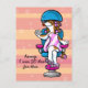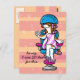 Features a truly pampered pooch. A feminine dog with her hair in curlers, sitting under a dryer waiting for her manicure and pedicure to dry. She's had a relaxing massage so she's still wrapped in a pink striped towel accented with bones. The background includes cute little pawprints scattered about.