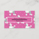 This business card for a dog groomer has poodles as a pattern on a pink background. Customize this business card with your own information and details.