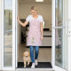 This personalized apron allows you to customize the name and business title on the front, making it perfect for professional dog groomers, pet salons, and animal care businesses.