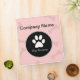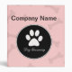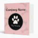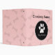 Dog grooming one inch 3 ring binder with image of a dog paw and dog bones pink background all over it. Best way to present your grooming styles and samples to the customers of your dog groomer business.