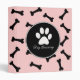 Dog grooming one inch 3 ring binder with image of a dog paw and dog bones pink background all over it. Best way to present your grooming styles and samples to the customers of your dog groomer business.