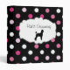 Pet grooming ring binder presentation book with colorful designer look that includes a pink text emblem, text you can personalize, a poodle dog silhouette, and fun pink polka dot background all over the binder. Best pet grooming binder to show off your various pet groomer styles and client's pets in a fun way.