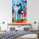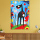A burst of colors celebrates vitality in this Joan Miró-inspired artwork, featuring a captivating black dog at the center. A visual ode to the joy and harmony of life.